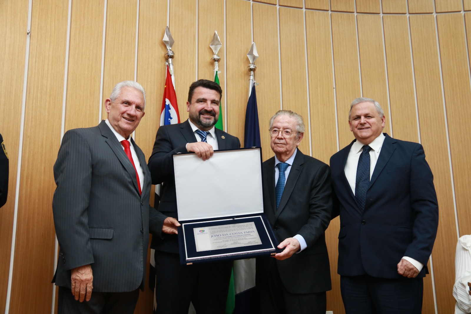 O outro homenageado da noite com o Título de Cidadão Sulsancaetanense, indicado pelo vereador Ubiratan Figueiredo (PSD), João da Costa Faria foi bastante elogiado. “Ícone” e “enciclopédia da Advocacia” foram alguns dos predicados a ele, que foi um dos fundadores da OAB da cidade, em 1966, além de ter presidido a entidade por dois mandatos. Com simpatia ímpar, característica que permeia toda sua trajetória, logo de início quebrou o protocolo e iniciou sua fala com o soneto ‘Ora Direis Ouvir Estrelas’, de Olavo Bilac. “Este soneto relata a razão e o lema de toda a minha essência: o amor ao semelhante”, iniciou Faria, para em seguida contar algumas histórias sobre a política da cidade, a qual aportou em 24 de julho de 1950. Com bom-humor e inteligência, tirou sorrisos do público diversas vezes.