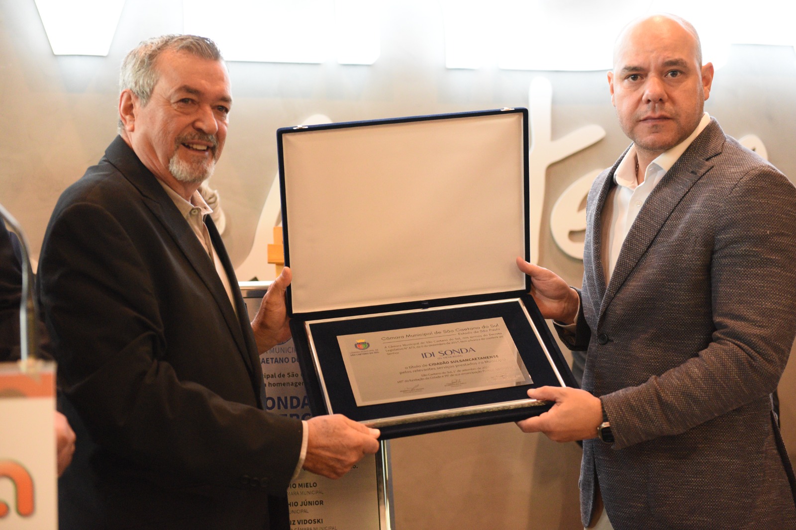 "O Sonda atende e supera as expectativas dos consumidores. É uma satisfação enorme ter sido o autor da propositura que concedeu o título de cidadão para o senhor Idi Sonda. Tenho muito orgulho em entregar essa honraria para a família na inauguração de mais essa unidade", frisou Mauricio Fernandes, ao ressaltar que a companhia é uma das maiores varejistas do País.
