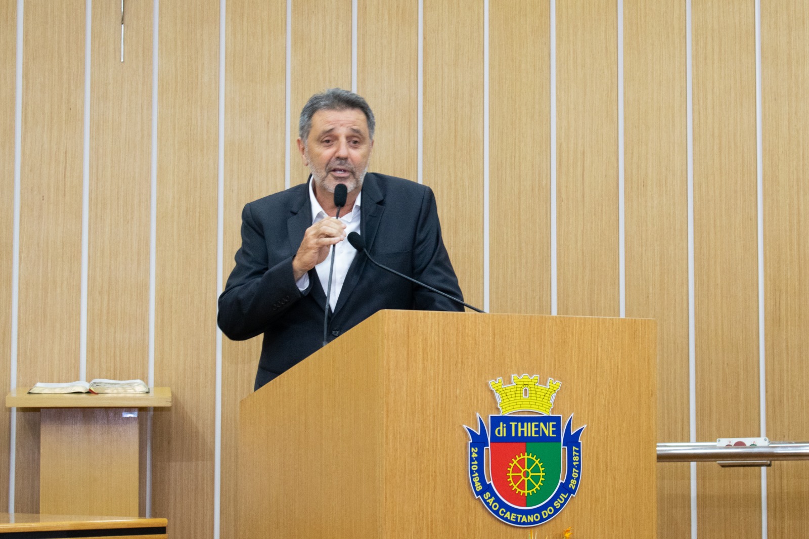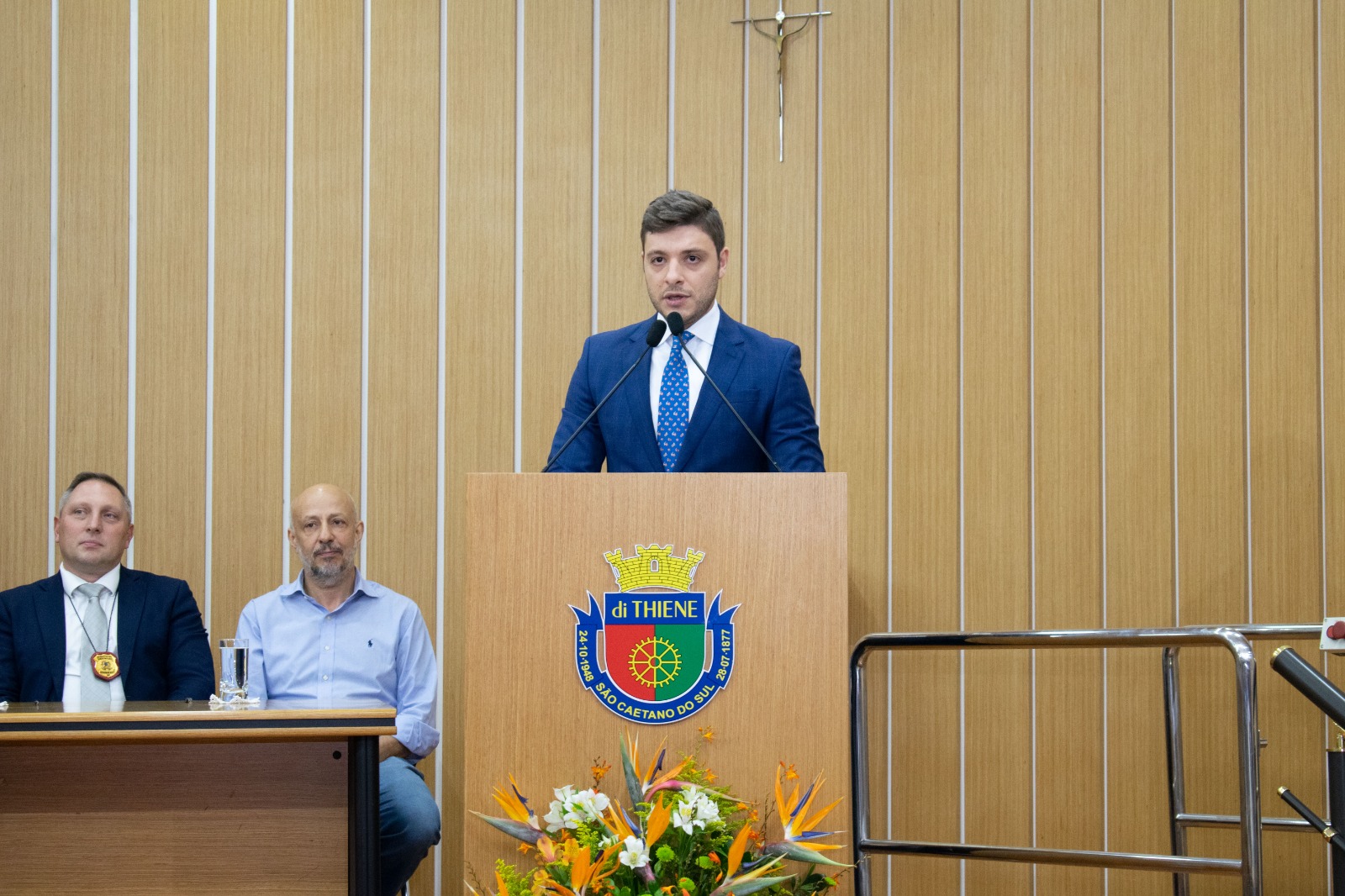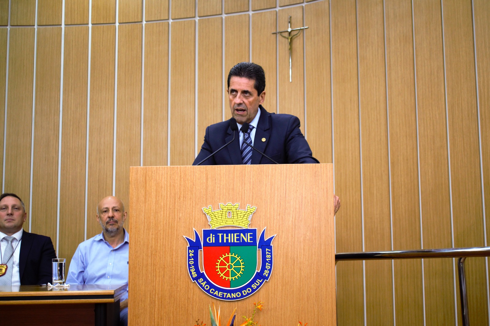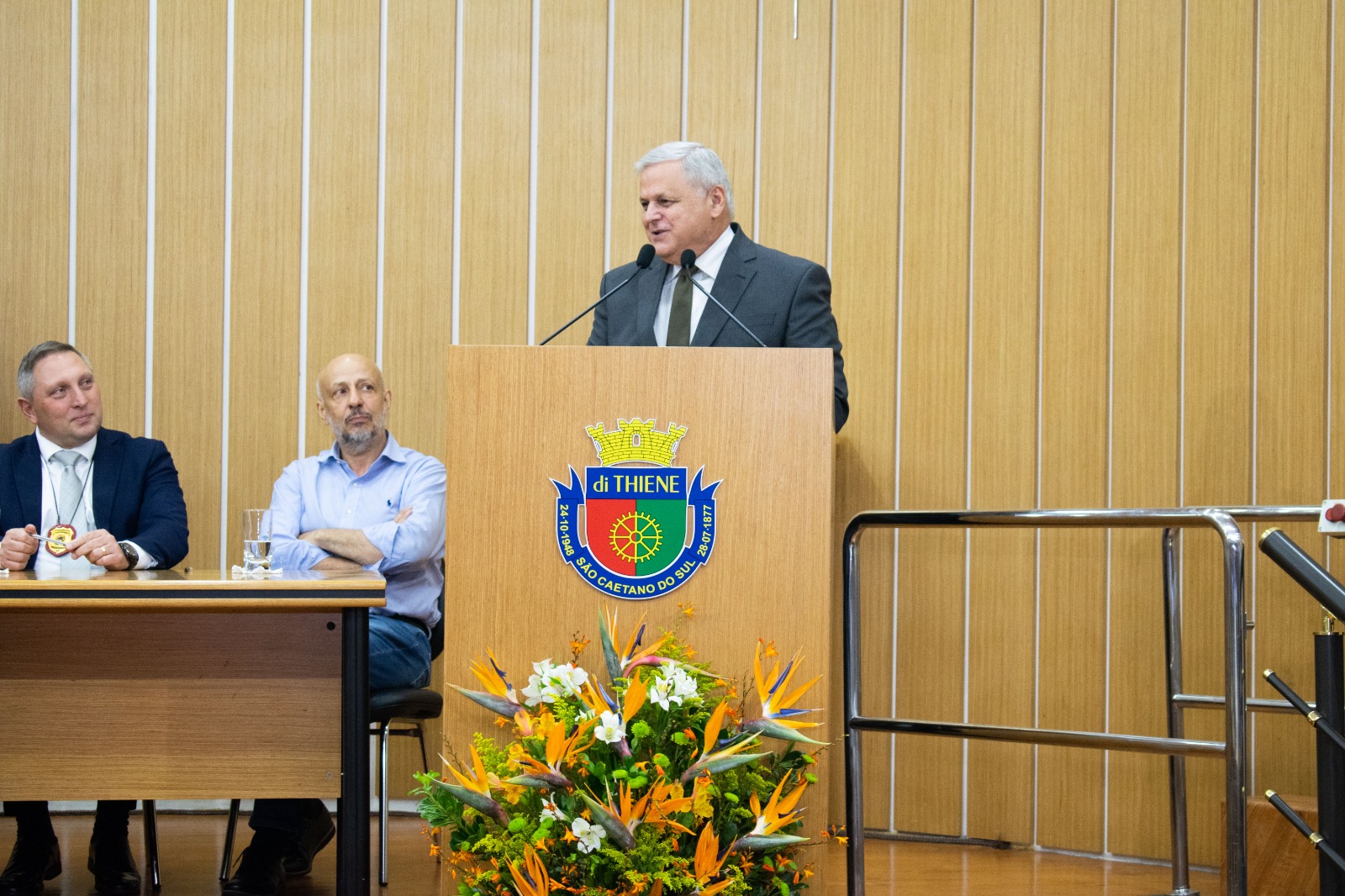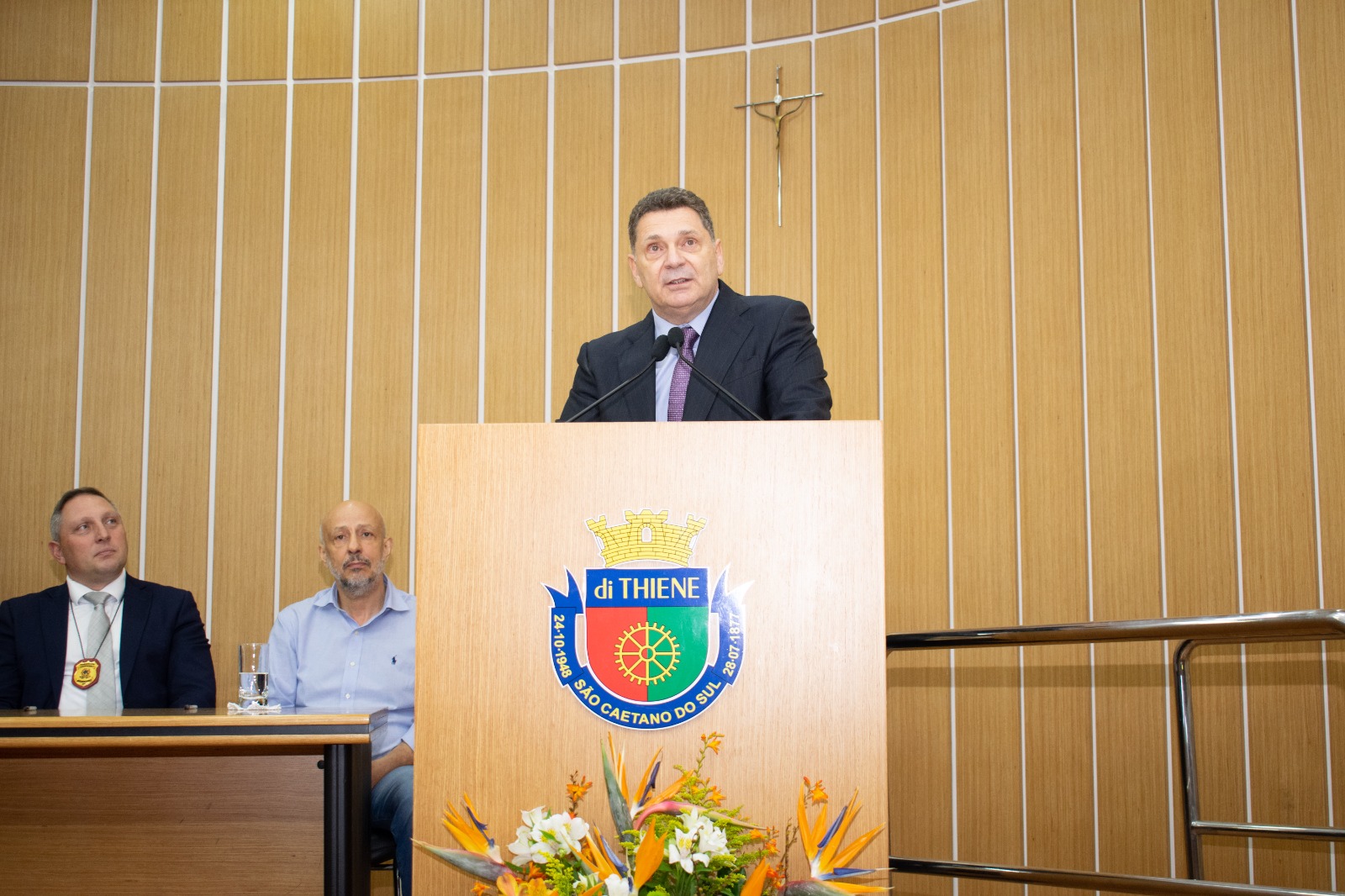 Representando o prefeito José Auricchio Júnior (PSDB), o vice-prefeito Carlos Humberto Seraphim (PL) reforçou o importante papel do homenageado na área da segurança pública. “É uma honra para nossa cidade a entrega desse título para esse grande profissional que tanto colaborou com São Caetano do Sul”, destacou. “Valorizamos muito a segurança pública na nossa cidade e temos um carinho especial pelas nossas forças de segurança. Essa união é fundamental na defesa do cidadão”, complementou Seraphim.